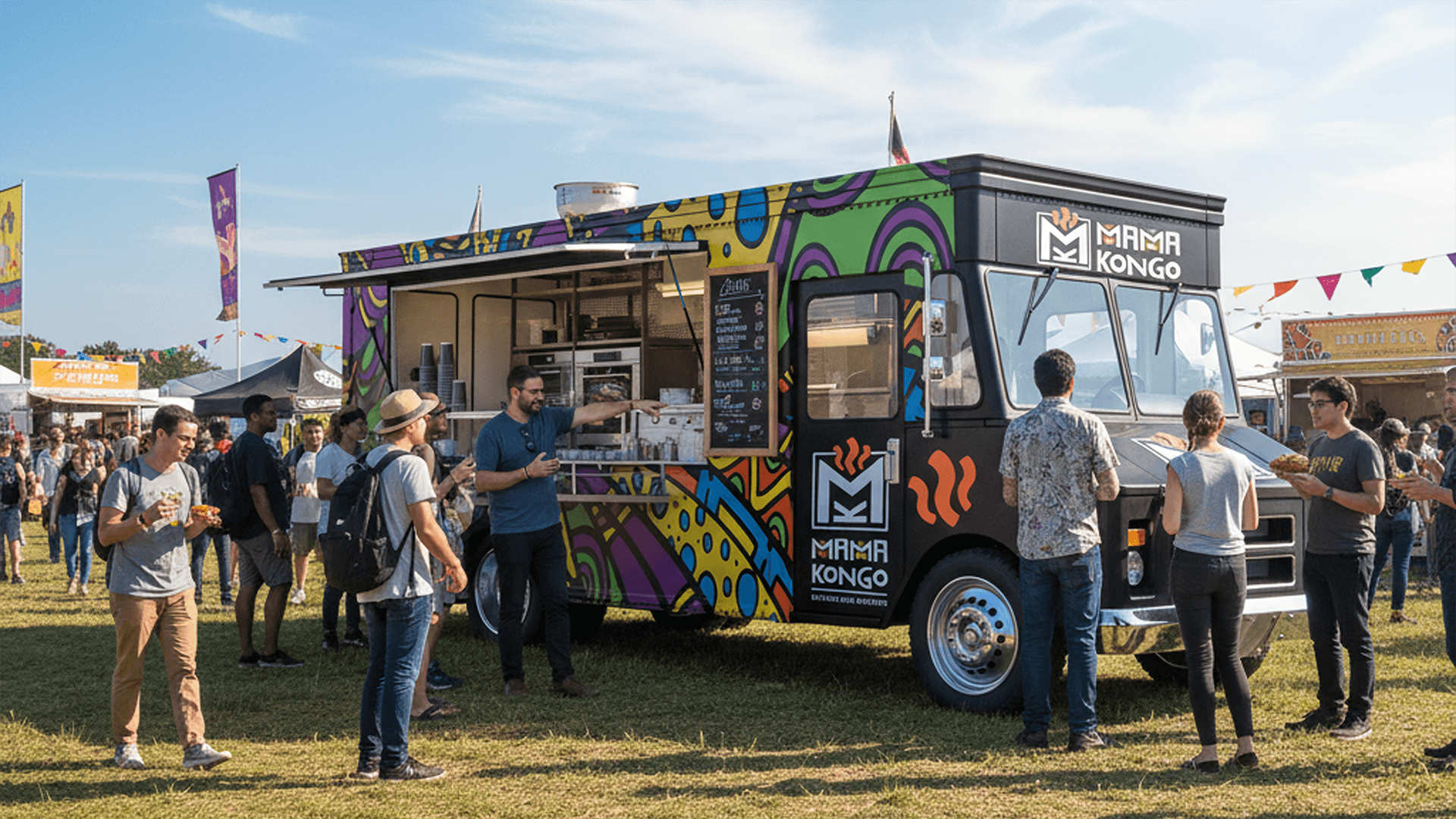 In a food market or festival environment, the identity scales up and commands the space. Bold, immersive and impossible to miss, it draws people in before they have even seen the menu.