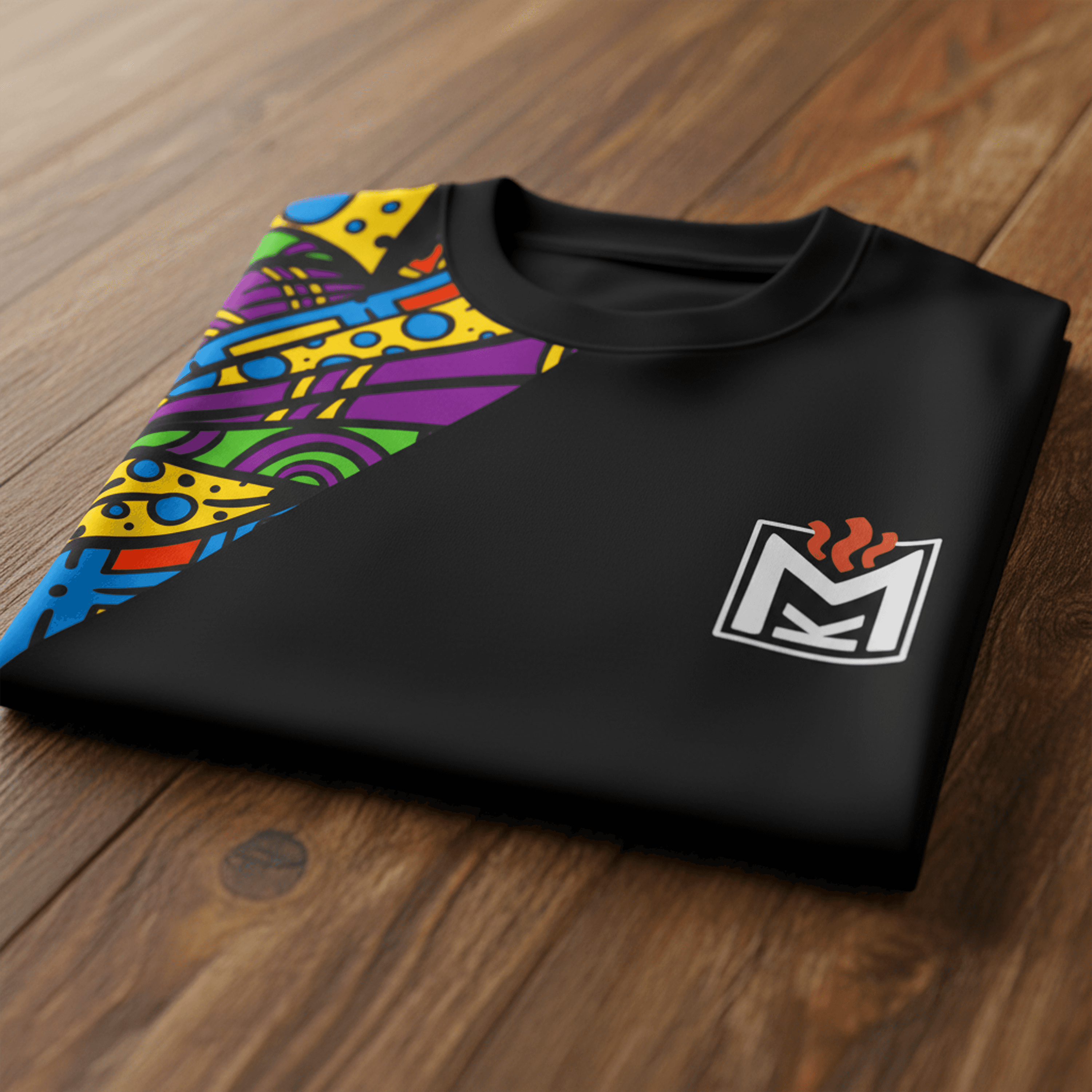 Clothing and merch is where the pattern really gets to breathe. Swept across sleeves, wrapped around uniforms, printed on the things people actually want to wear, it turns anyone representing the brand into a walking embodiment of it.