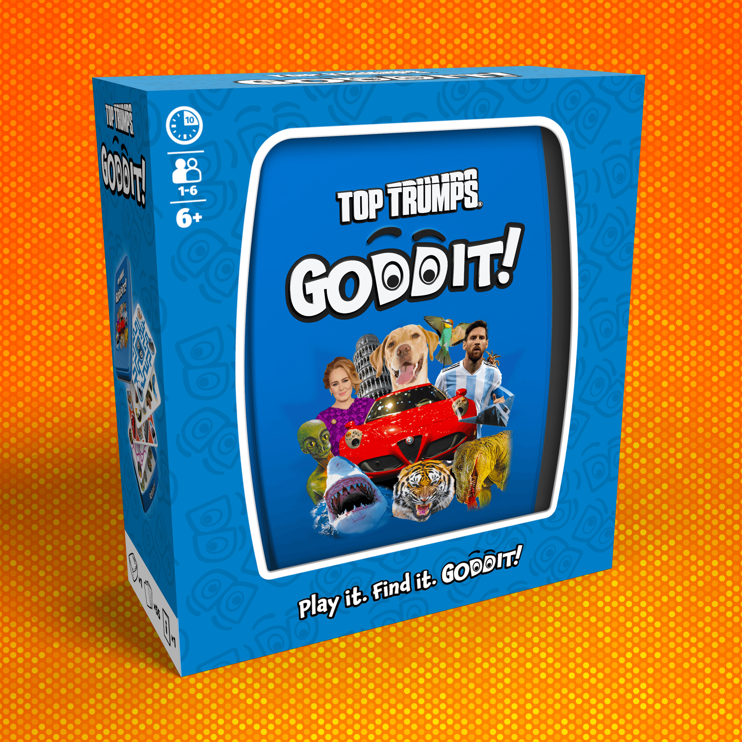 Each edition of GODDIT! has its own visual identity to match its theme, with the packaging designed to reflect the world of that particular pack. The format stays consistent, bold and energetic on shelf, while the artwork and palette shift to suit the subject. The "Play it. Find it. GODDIT!" strapline lands the tone in three punchy beats, no matter which edition you are holding.
