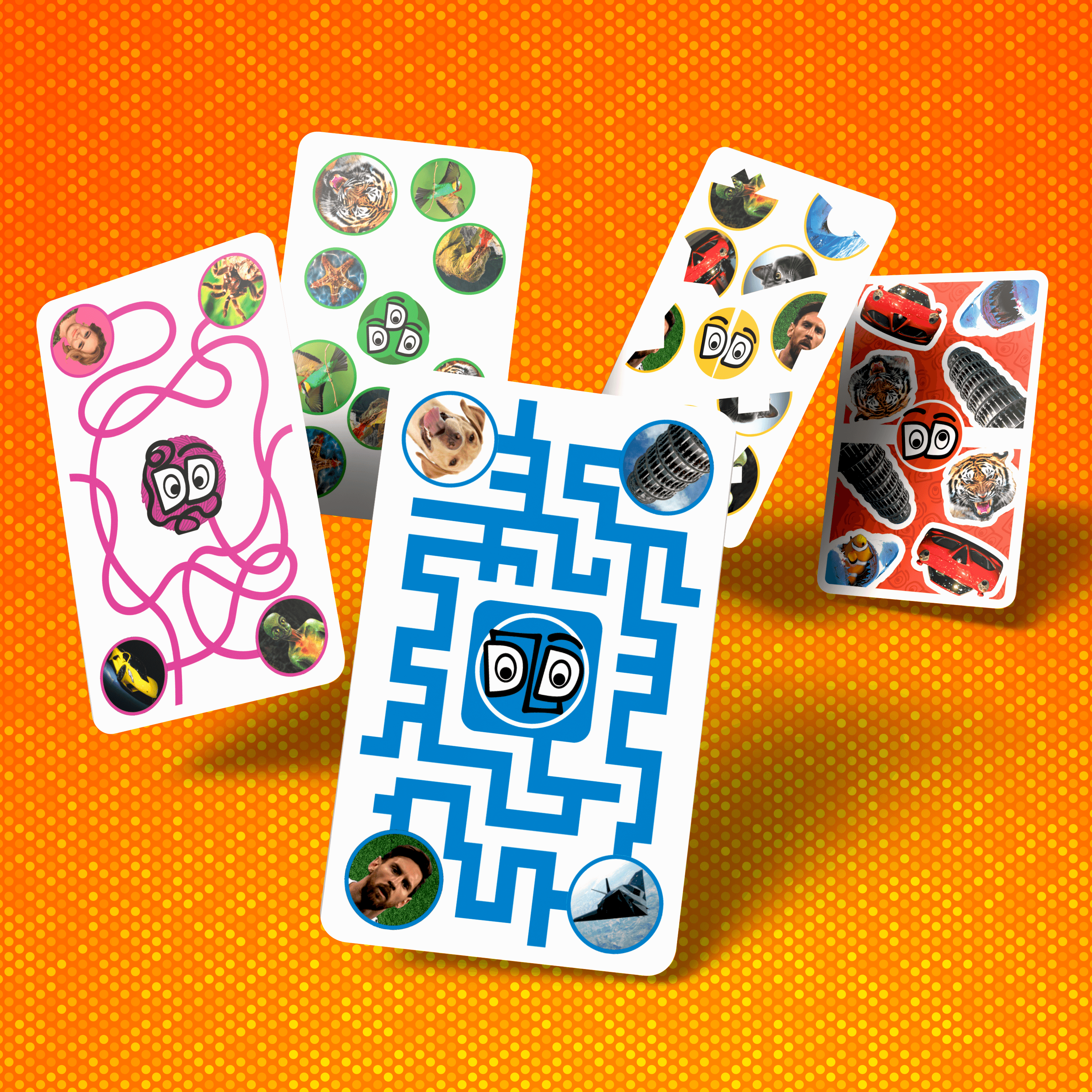 Designing the game was not just a visual exercise. We were presented with puzzle concepts and it was our job to turn them into puzzles that actually worked, each one contained within the confined space of a standard Top Trumps card. Every puzzle type had to be clear, solvable and visually distinct, all within an area not much bigger than a business card. That kind of constraint demands a very different kind of design thinking, and getting it right across 55 cards took as much problem-solving as it did craft.